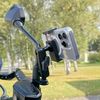 Samotný držiak je plne nastaviteľný pre telefóny so šírkou 56-92 mm a hrúbkou do 15 mm. Vkladanie a vyberanie je možné pohodlne jednou rukou, bez zdržiavania a rizika uvoľnenia zariadenia.360° otáčanie a až 220° náklon umožňujú plynulé prepínanie medzi horizontálnou a vertikálnou polohou - ideálne pre mapy, komunikátory a prehrávanie hudby. Konštrukcia jeurčená na používanie na cestách (nie v teréne), takže navigáciu a ovládacie prvky budete mať vždy bezpečne a prehľadne po ruke. Čierny dizajn vizuálne ladí s väčšinou kokpitov motocyklov a skútrov.